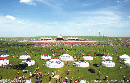 “那達慕”蒙古語為“娛樂”或“游戲”音譯。為蒙古族的傳統(tǒng)節(jié)日,據(jù)傳始于漢代。一年一度由一旗或數(shù)旗聯(lián)合在農(nóng)歷七八月舉行,每次一至數(shù)日,規(guī)模大小不一。是時正是草原上氣候怡人、綠草如茵、百花盛開、牛羊肥壯的黃金季節(jié)。節(jié)日期間,牧民們身穿節(jié)日新衣,乘馬驅(qū)車,從四面八方匯聚一處。一時草原上五彩旗幟如霞云飄掠,蒙古包如點點珍珠,一片節(jié)日氣象。大會上不僅有傳統(tǒng)的賽馬、摔跤、射箭等競技項目,拔河、藍球、下蒙古象棋等體育比賽,而且還有豐富多彩的文藝演出和琳瑯滿目的物資貿(mào)易交流。如今那達慕大會已經(jīng)成為草原上集體育比賽、文化娛樂、經(jīng)濟貿(mào)易、慶賀豐收為一體的綜合性盛大節(jié)日。