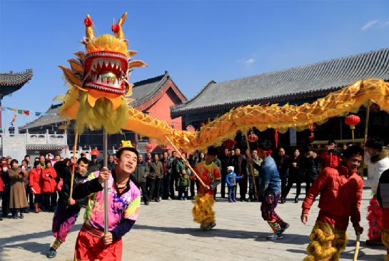 屆時(shí)在廟里還要敬龍牌及各路神仙,并且唱大戲、逛九曲、壘旺火,家家戶戶請(qǐng)親待客、邀朋會(huì)友,共享“二月二”盛會(huì)的歡樂,一同祈求“龍王爺”保佑五谷豐登、人丁興旺,流露出人們對(duì)龍的無限崇敬和虔誠(chéng)的信仰。
