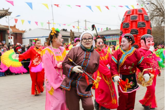 [資1]新城區(qū)討思浩村至今仍保留著過(guò)“天倉(cāng)節(jié)”的習(xí)俗,至今已有兩百多年歷史。每到農(nóng)歷正月二十五,討思浩村都要舉行象征五谷豐登的民間傳統(tǒng)節(jié)日——天倉(cāng)節(jié)。隨著鄉(xiāng)村振興戰(zhàn)略的不斷深入,農(nóng)民的生活水平也逐步提升,再也不需要“靠天吃飯”的新農(nóng)民也將對(duì)天地的祈禱轉(zhuǎn)化成了民俗活動(dòng)。經(jīng)歷數(shù)百年的沿襲,如今“天倉(cāng)節(jié)”這一民俗已成為討思浩村一個(gè)地域文化符號(hào),其中精彩紛呈的喜慶氛圍及獨(dú)特的民間傳統(tǒng)表演形式很受人們的喜愛(ài)。
