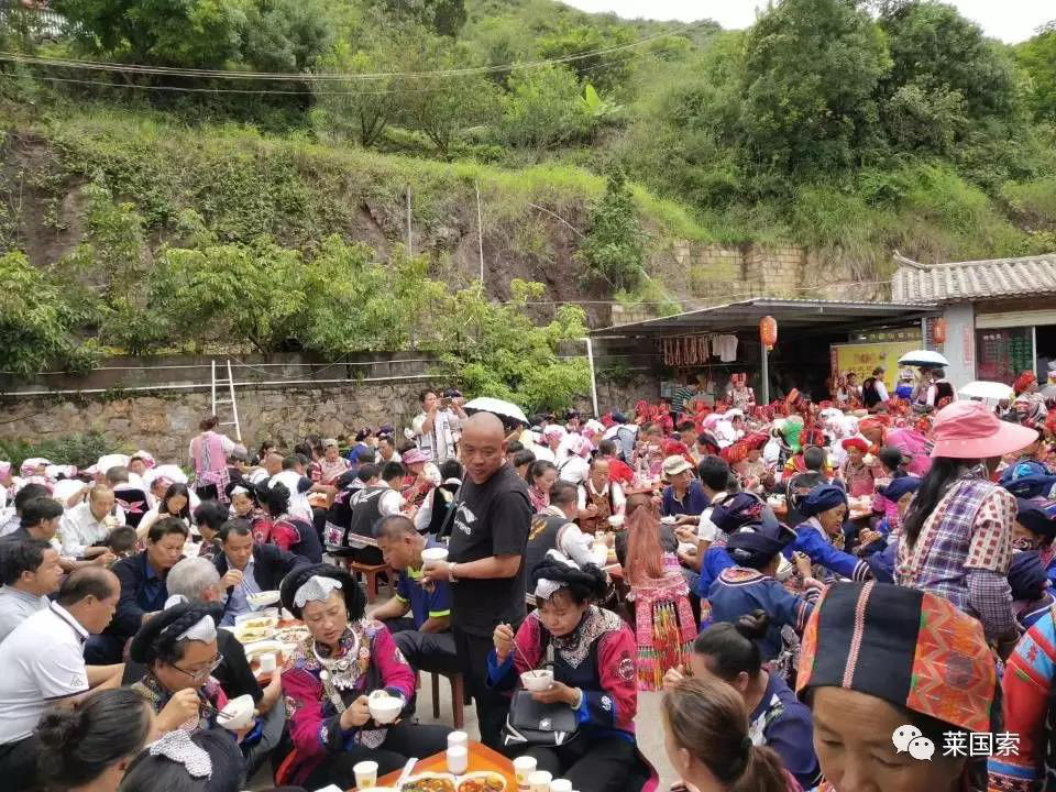 祭祖大典,禮畢?;顒拥娜w彝胞統(tǒng)一進(jìn)行就餐,各地彝胞唱起特色的彝語歌曲,祝福四方的彝胞。