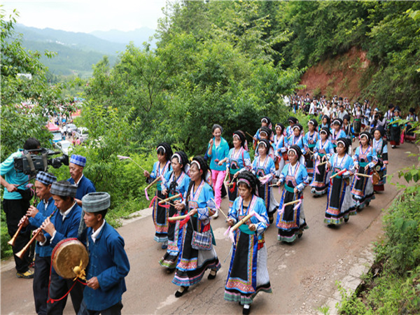 六嗩吶聲聲,鑼鼓齊鳴,各地布依同胞趕來參加六月六盛會。引自六盤水市紀(jì)委監(jiān)察局網(wǎng)站