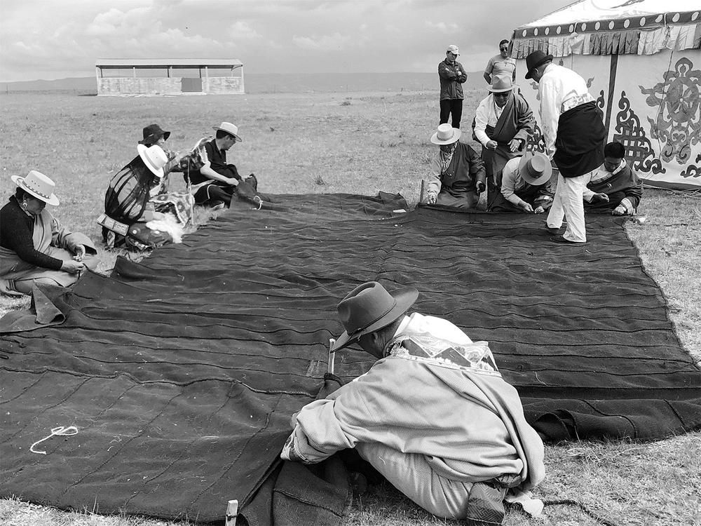 青海藏族黑牦牛帳篷制作技藝已有一千五百多年的歷史,它是藏族牧人主要的住家形式,在漫長的游牧歷史中,在艱苦的歲月中,黑牦牛帳篷給藏族牧民群眾賜予溫暖。青海藏族黑牦牛帳篷制作技藝主要分布在天峻縣新源鎮(zhèn)、木里鎮(zhèn)、江河鎮(zhèn)、蘇里鄉(xiāng)、龍門鄉(xiāng)、舟群鄉(xiāng)、織合瑪鄉(xiāng)、快爾瑪鄉(xiāng)、生格鄉(xiāng)、陽康鄉(xiāng)等地區(qū)。千百年來,當(dāng)?shù)啬撩袢罕娭鹚荻?,在冬、夏季牧場來往遷徙,黑帳篷因攜帶方便,質(zhì)地厚重,冬暖夏涼,防風(fēng)防寒、防雨防曬性能強,成為牧民生活中不可缺少的重要生活用具。
