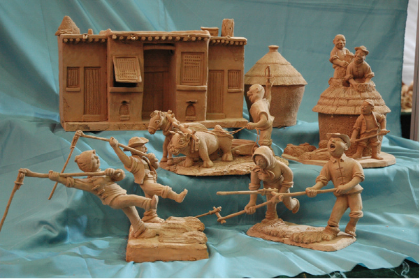 泥塑藝術(shù)是我國一種古老常見的民間藝術(shù)。它以泥土為原料,以手工捏制成形,或素或彩,以人物、動(dòng)物為主。不同的民間風(fēng)俗,流傳著很多動(dòng)人的傳說故事,這些構(gòu)成了泥塑藝術(shù)的精神內(nèi)核。民間泥塑的用途主要有祈子延壽、納福招財(cái)、驅(qū)邪避災(zāi)和裝飾擺設(shè)等。泥塑成本低,費(fèi)工少,是老百姓喜聞樂見的藝術(shù)表現(xiàn)形式,它往往和節(jié)令、禮儀、風(fēng)俗聯(lián)系在一起,反映的是當(dāng)?shù)剞r(nóng)村人們?nèi)粘I畹牟煌瑘?chǎng)景,人物栩栩如生,場(chǎng)景鮮活生動(dòng)。