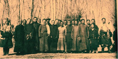 1948年,拉薩小學(xué)校長(zhǎng)邢肅芝(左起第七腰間佩槍者)應(yīng)邀赴尼泊爾訪問(wèn)前與學(xué)校教職員及部分家長(zhǎng)合影留念