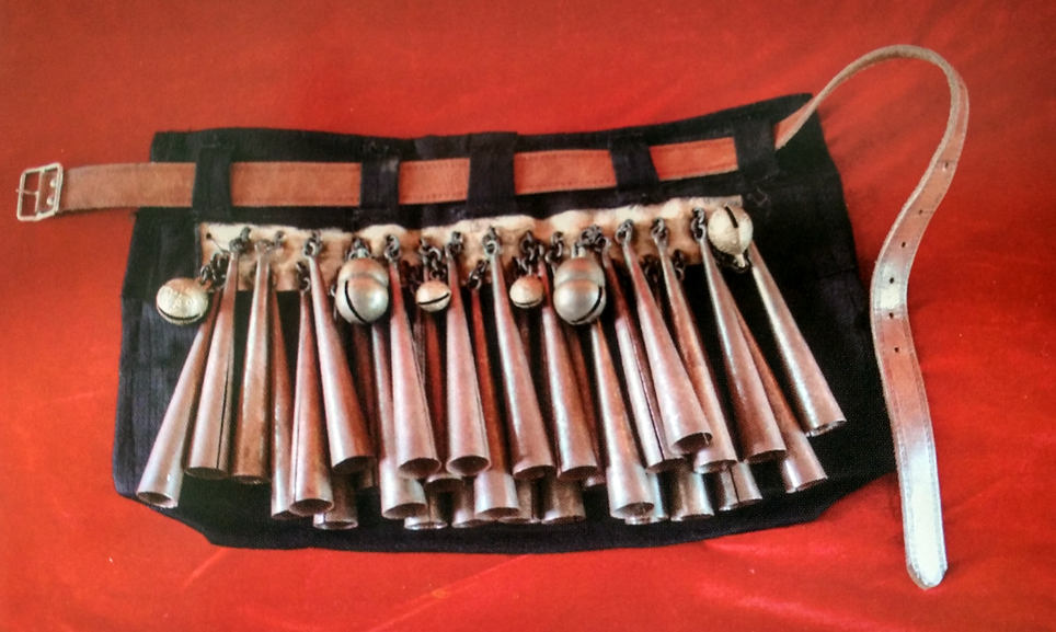 牛角,用黃牛犄角制成,音色渾厚悠揚,最初是狩獵時的進(jìn)攻信號,后曾廣泛用于戰(zhàn)場。
