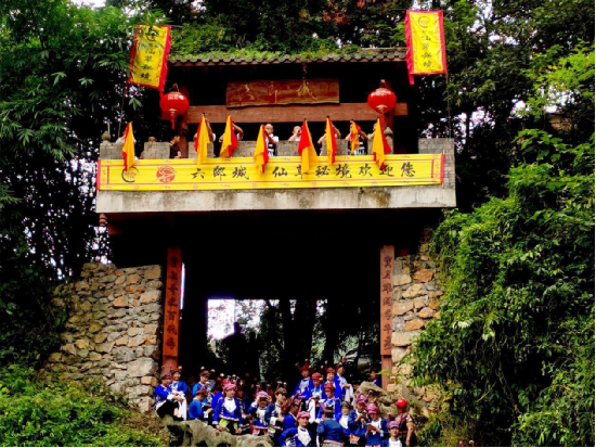六郎城村屬于喀斯特地貌,四面環(huán)山,山上有整片古木參天的風(fēng)水樹(shù)林,山峰外側(cè)懸崖峭壁,山峰內(nèi)部平緩;左邊是陡壁,縱有萬(wàn)千來(lái)犯之?dāng)骋部蓱{借地勢(shì)險(xiǎn)要守住,右邊是六郎城,只要在烽火臺(tái)上點(diǎn)燃狼煙,三五分鐘即可就位嚴(yán)陣以待?,F(xiàn)殘存有青石壘砌石墻、戰(zhàn)壕、瞭望臺(tái)、石碉堡、烽火臺(tái)等古遺址,彰顯獨(dú)特的“沙場(chǎng)”韻味,濃烈的英雄氣息和鮮明的民族特點(diǎn)與神秘濃郁的壯族文化習(xí)俗相交融,形成屬于六郎城自身厚重的民間文化。該村自古以來(lái)具有樂(lè)觀尚上的精神,男女老少擅長(zhǎng)歌舞,壯族風(fēng)俗禮儀濃厚,每年六月初三至初九,都要舉辦別具一格的“六郎節(jié)”來(lái)祭祀楊六郎,祈求保佑平安、健康、豐收;紅白喜事吹拉彈唱、逢年過(guò)節(jié)耍龍、舞獅,跳弄婭歪、銅鼓舞、手巾舞等,其歷史悠久、原始綠色生態(tài)和壯族傳統(tǒng)文化保存得相當(dāng)?shù)耐旰谩?018年,六郎城獲批省級(jí)文明村;同年12月,被評(píng)為文山州第一批“民族團(tuán)結(jié)進(jìn)步示范村”;2019年底被評(píng)為“云南省少數(shù)民族特色村寨”;2020年被評(píng)為云南第一批省級(jí)民族團(tuán)結(jié)進(jìn)步示范村。