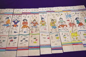 納西族東巴畫亦字亦畫,因保留了濃郁的象形文字書寫特征,被稱為研究人類原始繪畫藝術(shù)的“活化石”。 新華網(wǎng) 李寧攝