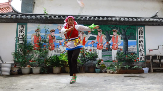 傳統(tǒng)文化時(shí)時(shí)學(xué),白族舞蹈代代傳。小小的霸王鞭看似簡(jiǎn)單,里面卻包含了白族人民田間勞作的智慧。用自己的努力,言傳身教地教授霸王鞭,這愚公移山般的精神也是傳承人的智慧?!敖裉煜挛?點(diǎn),我還要去江尾一趟,教他們的繞三靈團(tuán)隊(duì)跳霸王鞭”,何松康說(shuō)。