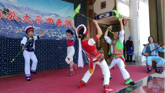 慶洞村有一支白族繞三靈文藝隊(duì),全都由村里的文藝愛(ài)好者組成,何松康是文藝隊(duì)的主力?!叭?duì)20多人,霸王鞭都是我?guī)С鰜?lái)的,都可以算作我的徒弟,平時(shí)沒(méi)事大家就一起練習(xí)表演,有活動(dòng)了就一起參加活動(dòng),傳承傳統(tǒng)文化的同時(shí),還可以補(bǔ)貼一點(diǎn)收入”,何松康說(shuō)。