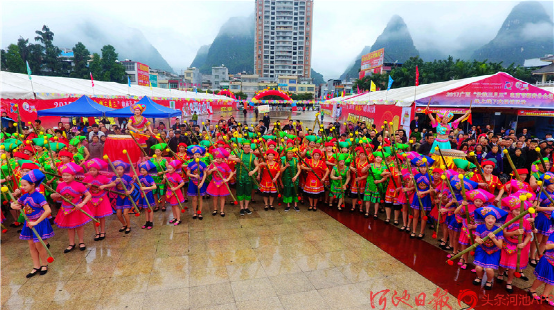 都安縣500名群眾歡聚一堂,打起扁擔(dān),喜迎“三月三”。