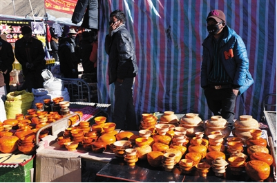 雅礱物資文化交流會(huì)上有許多賣木碗的商戶。