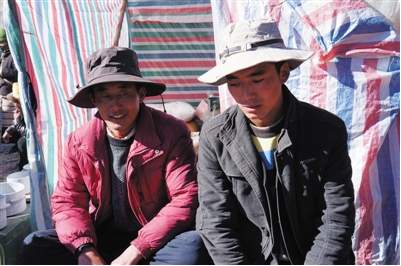 看守著攤位的普布次仁兄弟。