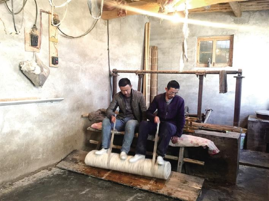 “從爺爺手里傳到我們這一代,就屬于第三代了?!倍耪计秸f,搟氈這個(gè)手藝傳下去就到了自己孩子們手里,再遠(yuǎn)也沒想過,真要失傳了,以后可能也就沒人知道有搟氈這個(gè)手藝了。