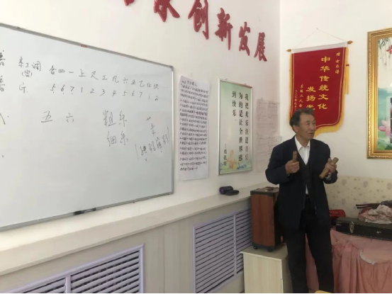 南文述從小酷愛音樂,深感傳統(tǒng)音樂的魅力,為了讓千年古韻律更好地綻放光彩,潤澤當?shù)厝罕姷木袷澜?,南文述退休后長年收集、整理古樂曲相關資料,學習、傳承古樂曲演奏,在全縣范圍內(nèi)共收集到七十余首。商都縣大力挖掘和保護文化遺產(chǎn)工作開展后,為南文述免費提供了工作室,南文述在此開辦了民族樂器培訓班,為感興趣的群眾義務教學。目前已有學員60余人,2022年古樂曲申報成功為第七批內(nèi)蒙古自治區(qū)級非物質(zhì)文化遺產(chǎn)代表性項目,在當?shù)厝罕娚顚拥木褡非笾邪l(fā)揮著越來越重要的作用。
