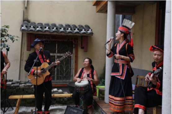 瑤族民間樂(lè)團(tuán)——七彩鄉(xiāng)音全天候?yàn)橛慰脱莩矛幾鍌鹘y(tǒng)音樂(lè)元素創(chuàng)作的歌曲