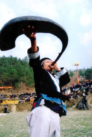 (白褲瑤同胞吹響牛角號(hào))