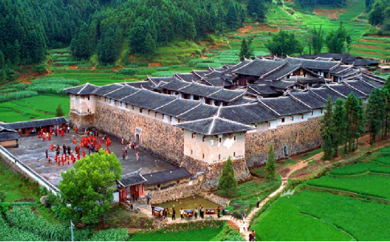 安貞堡,又名“池貫城”,位于福建永安市槐南鄉(xiāng),為全國重點文物保護單位,以其精湛的清代建筑藝術(shù)風(fēng)格,被譽為“閩中瑰寶”。安貞堡占地15畝,大小房間320余間,建有正堂、下堂18處,備有12間廚房和5口水井,可供千余人食用。安貞堡的主人池占瑞,是清末當(dāng)?shù)氐呢暽拓斨?。鑒于清末匪患四起,他傾其萬余資財,建此土堡。