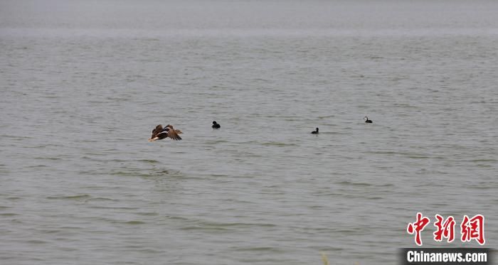 鳥(niǎo)兒在南宮湖濕地公園嬉戲?!√锿?攝