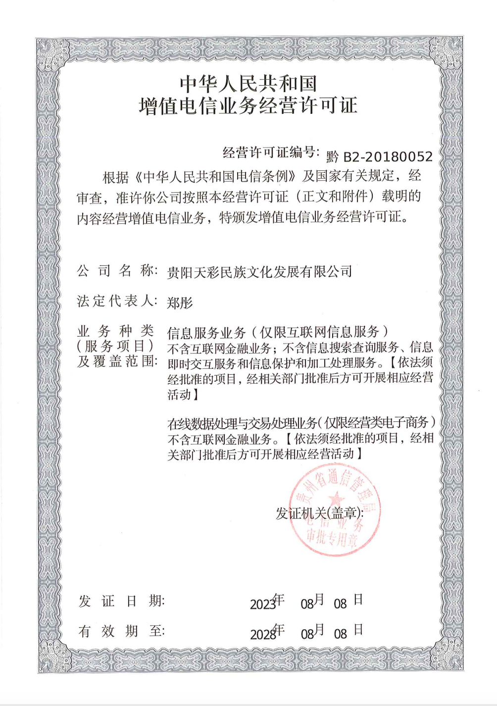 增值電信業(yè)務(wù)經(jīng)營許可證B2-20180052