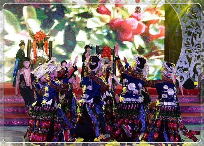 中國(guó)苗族網(wǎng)訊 2019年1月19日,由貴州省社科聯(lián)、貴州民族大學(xué)指導(dǎo),貴州省苗學(xué)會(huì)主辦,貴陽(yáng)市苗學(xué)會(huì)、六盤水市苗學(xué)會(huì)、安順市苗學(xué)會(huì)、畢節(jié)市苗學(xué)會(huì)、銅仁市苗學(xué)會(huì)、黔西南州苗學(xué)會(huì)、黔東南州苗學(xué)會(huì)、黔南州苗學(xué)會(huì)、貴安新區(qū)苗學(xué)會(huì)、多彩貴州城建設(shè)經(jīng)營(yíng)有限公司共同協(xié)辦的“迎新春-蝶韻楓彩鼓聲來(lái)”2019春節(jié)聯(lián)歡晚會(huì),在貴州省貴陽(yáng)市“多彩貴州城”展示中心隆重舉辦。貴州省9個(gè)州市及貴安新區(qū)苗族、布依族、侗族、土家族、彝族、仡佬族、水族、回族、白族、瑤族、壯族、毛南族、蒙古族、仫佬族、羌族、滿族等17個(gè)少數(shù)民族載歌載舞歌盛世,歡天喜地迎新春。 應(yīng)邀出席春晚的領(lǐng)導(dǎo)嘉賓有貴州省人大常委會(huì)原副主任、省苗學(xué)會(huì)老會(huì)長(zhǎng)楊光林,以及貴州省人大常委會(huì),貴州省社科聯(lián),貴州省民政廳,貴州省政協(xié),貴州民大,貴州省政協(xié),貴州省文化和旅游廳,貴州省總工會(huì),貴州省文聯(lián)、貴州省人大、省委宣傳部、省民政廳,民宗委,社科聯(lián),貴州省八大民族學(xué)會(huì)的相關(guān)領(lǐng)導(dǎo)等應(yīng)邀出席并觀看演出。 春晚得到了貴州省委宣傳部領(lǐng)導(dǎo)關(guān)心,省委常委、省委宣傳部慕德貴部長(zhǎng)對(duì)晚會(huì)專門作出重要批示,要求把春晚打造成一臺(tái)“思想性、藝術(shù)性、觀賞性統(tǒng)一的文藝晚會(huì),豐富春節(jié)期間群眾性精神文化生活,營(yíng)造歡樂(lè)、喜慶、團(tuán)結(jié)、祥和的節(jié)日氛圍”。 晚會(huì)緊扣“同心共筑中國(guó)夢(mèng),中華民族一家親”主題,圍繞共同團(tuán)結(jié)奮斗、共同繁榮發(fā)展主題,繼承和弘揚(yáng)中華民族優(yōu)秀傳統(tǒng)文化,積極展示貴州少數(shù)民族同胞改革開(kāi)放40周年來(lái)翻天覆地的新變化,用少數(shù)民族原生態(tài)歌舞形式歌頌黨、歌頌祖國(guó)、歌頌民族大團(tuán)結(jié)。春晚節(jié)目,由貴州省各州市國(guó)家非遺保護(hù)節(jié)目、在中央春晚節(jié)目,由貴州省各州市國(guó)家非遺保護(hù)節(jié)目、在中央級(jí)、省市級(jí)比賽中獲獎(jiǎng)的各民族原生態(tài)蘆笙舞、錦雞舞、銅鼓舞、板凳舞,苗族飛歌、古歌、大歌、情歌、絕技;民族盛裝走秀;非遺文化展示等26個(gè)節(jié)目組成。 晚會(huì)由240位貴州各地苗族演員,50位苗族、布依族、侗族、仡佬族、彝族、土家族、回族等17個(gè)少數(shù)民族演員,在主持人的開(kāi)場(chǎng)白介紹中,手持燈花、衣著盛裝在鼓點(diǎn)笙曲中步入會(huì)場(chǎng)。 接著,被國(guó)內(nèi)外譽(yù)為“東方迪斯科”的黔東南州臺(tái)江《反排木鼓舞》拉開(kāi)笙鼓迎春的序幕,雷山國(guó)家級(jí)非遺節(jié)目《掌坳銅鼓舞》、《錦雞舞》,貴陽(yáng)市花溪區(qū)《花鼓舞》、貴安新區(qū)原生態(tài)蘆笙舞《花坡韻》、黔南州《鼓龍鼓虎-長(zhǎng)衫龍》、兒童舞蹈《跺月亮》、畢節(jié)市納雍縣蘆笙舞《滾山珠》、凱里原生態(tài)合唱《春之歌》、安順留守兒童合唱團(tuán)《又見(jiàn)桃花開(kāi)》、金竹樂(lè)隊(duì)蘆笙組合《酒歌》、銅仁市絕技《紙上飛仙》、黔西南州《板凳舞》等,一個(gè)個(gè)節(jié)目精彩絕倫、美輪美奐,舞出少數(shù)民族同胞“美起來(lái)、笑起來(lái)、富起來(lái)、強(qiáng)起來(lái)”的精神風(fēng)貌、音容笑貌。最后,貴州省17個(gè)世居少數(shù)民族240名演員齊唱《愛(ài)我中華》,在“五十六個(gè)民族五十六朵花,五十六個(gè)兄弟姐妹是一家”的歌聲中把整臺(tái)晚會(huì)推向高潮,拉下帷幕。 此次春晚民族文化濃厚、明星歌手薈萃、演員陣容龐 此次春晚民族文化濃厚、明星歌手薈萃、演員陣容龐大、節(jié)目精彩絕倫。這些節(jié)目,涵蓋了東部方言、中部方言和西部方言各民族支系。遍及黔東南州、黔西南州、黔南州、貴陽(yáng)市、安順市、畢節(jié)市、六盤水市、銅仁市和貴安新區(qū)。老藝術(shù)家榜香、青年歌手阿幼朵、潘興周、雷艷、楊一方、阿娜丹、歐桑、楊佳茜、楊祖桃、楊思雨、楊廷勇、吳敏成、阿蕾倩、余秋陽(yáng)、阿依三姐妹、谷阿斯組合、阿依山娃組合等20多名少數(shù)民族歌星紛紛登臺(tái)獻(xiàn)藝,演員達(dá)300余人。 貴州省人大常委會(huì)原副主任、貴州省苗學(xué)會(huì)老會(huì)長(zhǎng)楊光林說(shuō),春晚的舉辦,有利于提高民族同胞的戰(zhàn)斗力、凝聚力、感召力!春晚牢牢把握了“百姓富、生態(tài)美”兩條底線,通過(guò)晚會(huì)形式,吹響了少數(shù)民族同胞在黨中央和貴州省委、省政府的堅(jiān)強(qiáng)領(lǐng)導(dǎo)下,致力于決戰(zhàn)脫貧攻堅(jiān),決勝同步小康、實(shí)現(xiàn)鄉(xiāng)村振興的號(hào)角。是號(hào)召大家參與國(guó)家實(shí)施的“鄉(xiāng)村振興、脫貧攻堅(jiān)”任務(wù),努力實(shí)現(xiàn)貴州人民2020年和全國(guó)人民同步實(shí)現(xiàn)小康及全國(guó)人民正在努力實(shí)現(xiàn)的“中國(guó)夢(mèng)”作出貢獻(xiàn)的動(dòng)員令! 晚會(huì)當(dāng)天,春晚組委會(huì)主任、貴州省苗