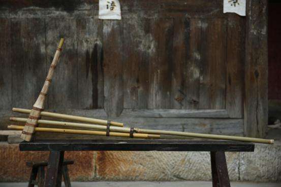 共鳴管:是套在笙管上端的一截竹管,可使音量明顯增大,多使用毛竹制作,依音高不同而異,以c、c1、c2三音為例,管長(zhǎng)分別為60厘米、30厘米、15厘米,余者類推。以上所述為黔東南地區(qū)的苗族蘆笙;在黔中、黔南和黔西北,則流行著另一種形制的蘆笙,笙管用白竹或筍殼竹制作,下端管口不堵塞。上端用兩道竹篾箍緊,笙斗制作時(shí)中間不剖開(kāi),而是從粗端挖起,直通細(xì)端吹口部位,然后用圓木塞把粗端開(kāi)口堵嚴(yán),再用數(shù)道化篙皮箍住。