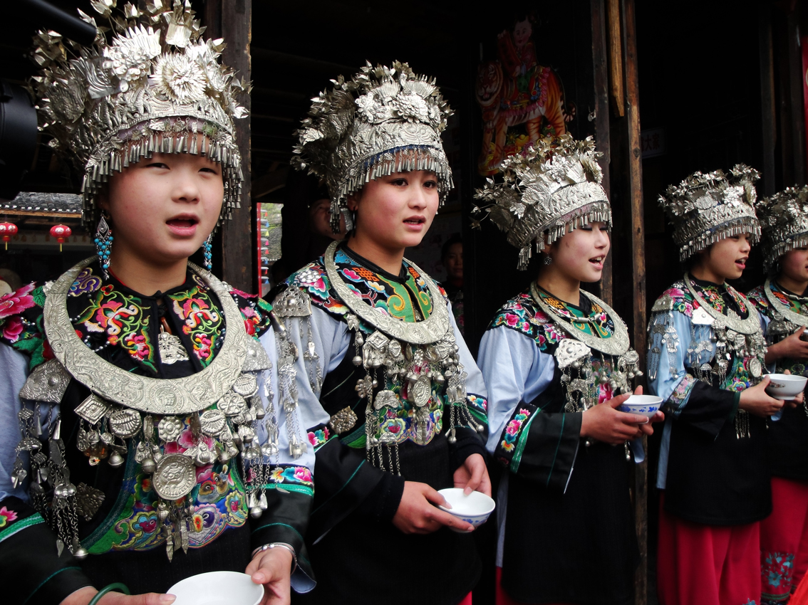 敬客酒。黔東南地區(qū)的苗族敬客,先由男主人向客人敬酒,每人必須先喝兩杯,寓意“你是用兩只腳走來(lái)的”,這兩杯酒都要一飲而盡,第三杯開(kāi)始,主人便可隨意。待到一定時(shí)候,其主人便同姑娘、媳婦們一起上陣,手持酒海(盛酒的土缽)、酒碗站立客人身后以歌敬酒。先從長(zhǎng)者開(kāi)始敬完一輪,再反方向敬一輪。