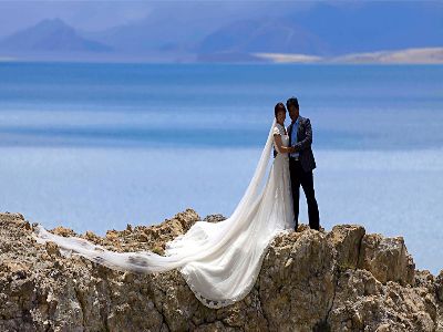 圖片說明:拍婚紗照的藏族夫婦