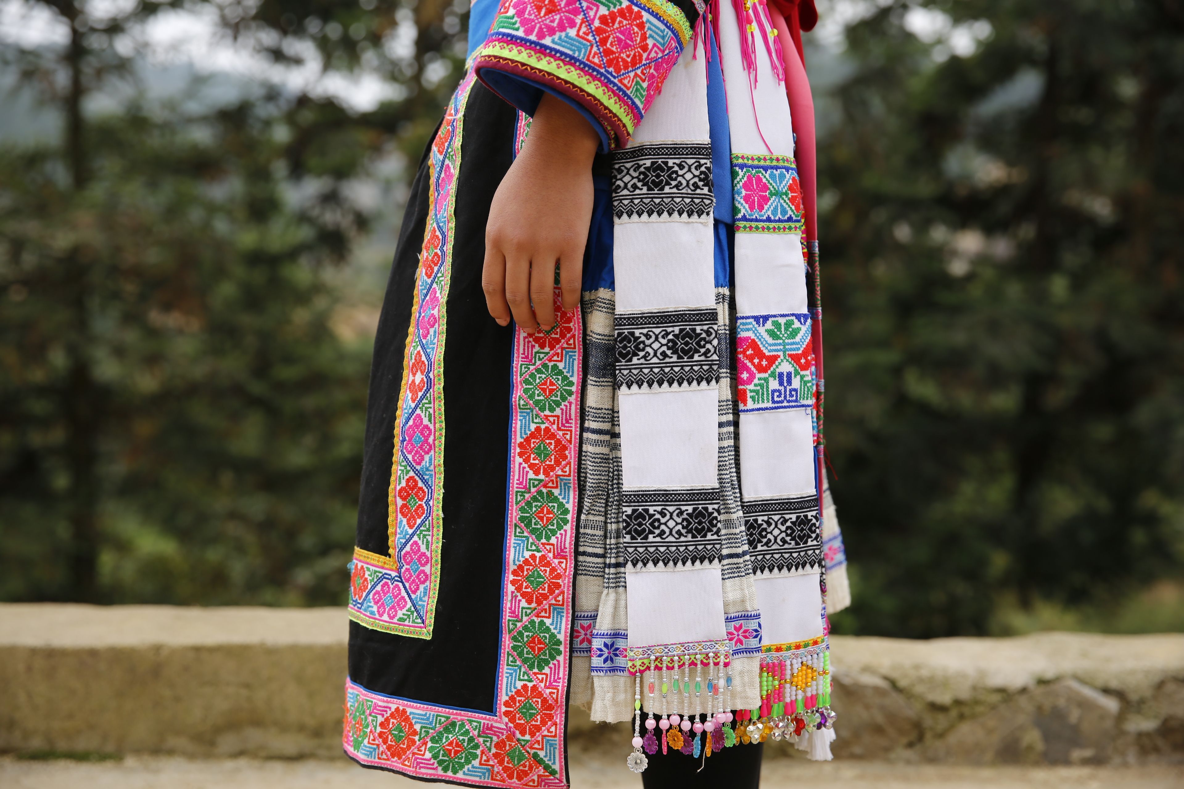 苗族女子服飾花帶百褶裙-裙擺側面繡花