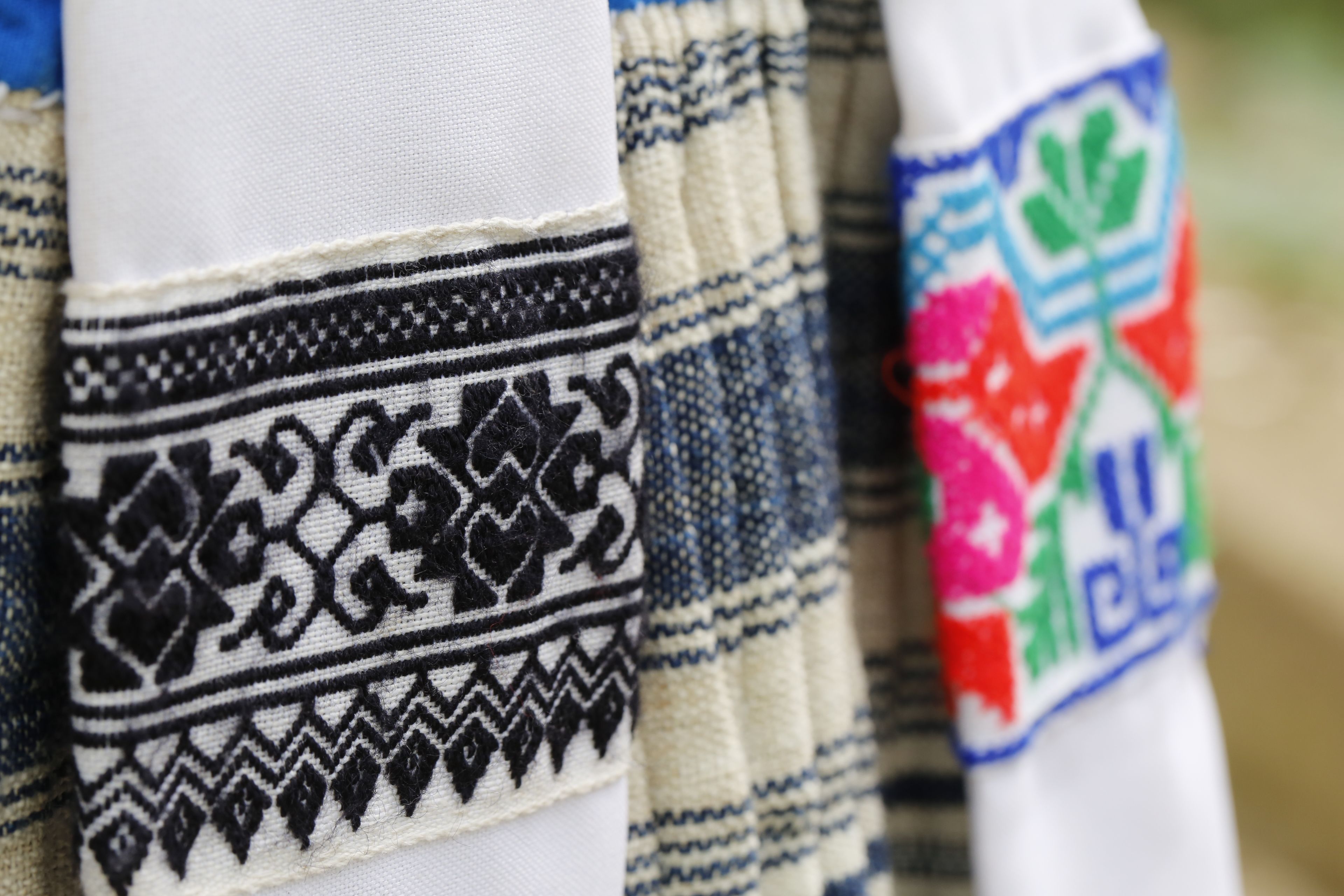 苗族女子服飾花帶百褶裙-裙擺側面繡花及印染