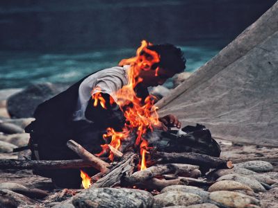 圖片名稱(chēng):在河邊扎營(yíng)的放映員